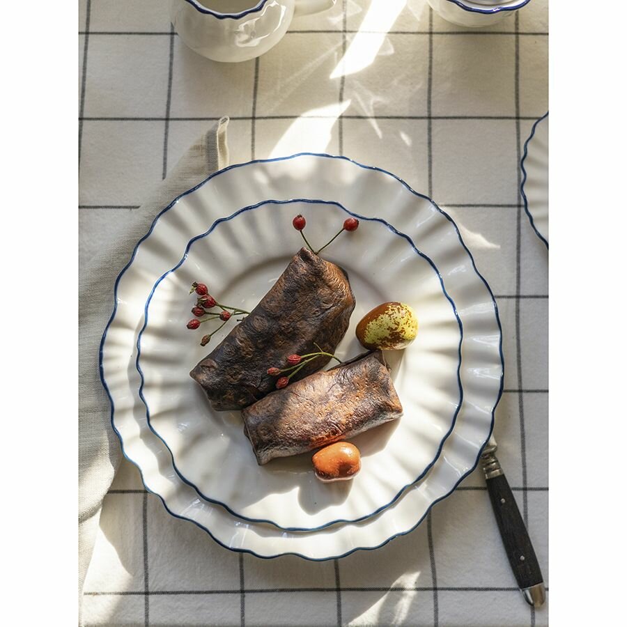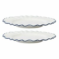 Купить Тарелки (2 шт) фарфоровые 21 см Santorini от Liberty Jones плоские, для праздничной красивой сервировки, набор обеденной посуды для кухни, из фарфора белые с синим кантом с доставкой по всей России.