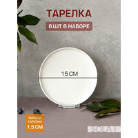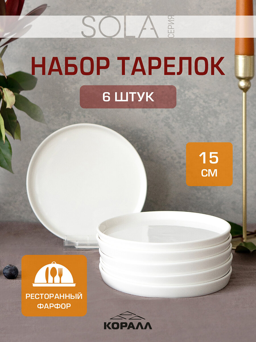Купить Тарелки десертные блюдца круглые плоские с бортом 15 см 6 шт. набор тарелок пирожковых Sola фарфор с доставкой по всей России.