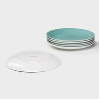 В комплект входят 6 круглых тарелок диаметром 19 см каждая, выполненных в бирюзовом цвете с зелеными, голубыми и бирюзовыми оттенками.