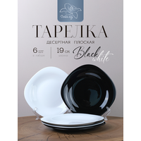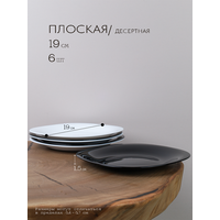Тарелка десертная 6 шт: 3 шт черные, 3 шт белые. ширина – 19 см, высота – 1,5 см.