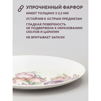 Фарфоровая посуда обеспечивает прочность и долговечность, не боится высоких температур, поэтому тарелки можно использовать в микроволновой печи или духовке.