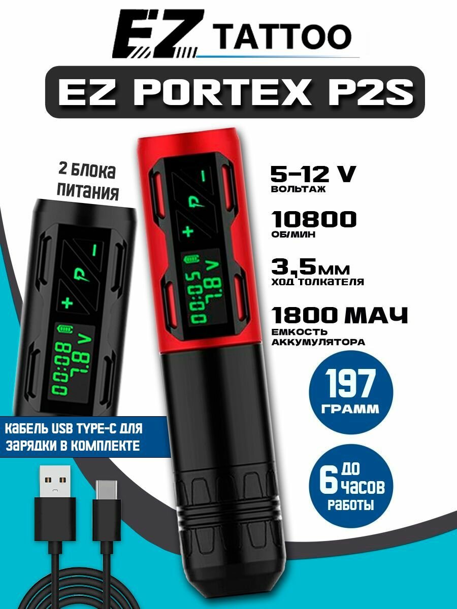 | Подробная комплектация | - Тату машинка EZ Portex Generation P2S. - Кабель для зарядки. - Коробка. |