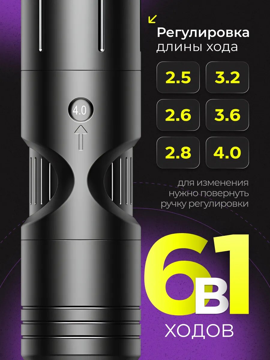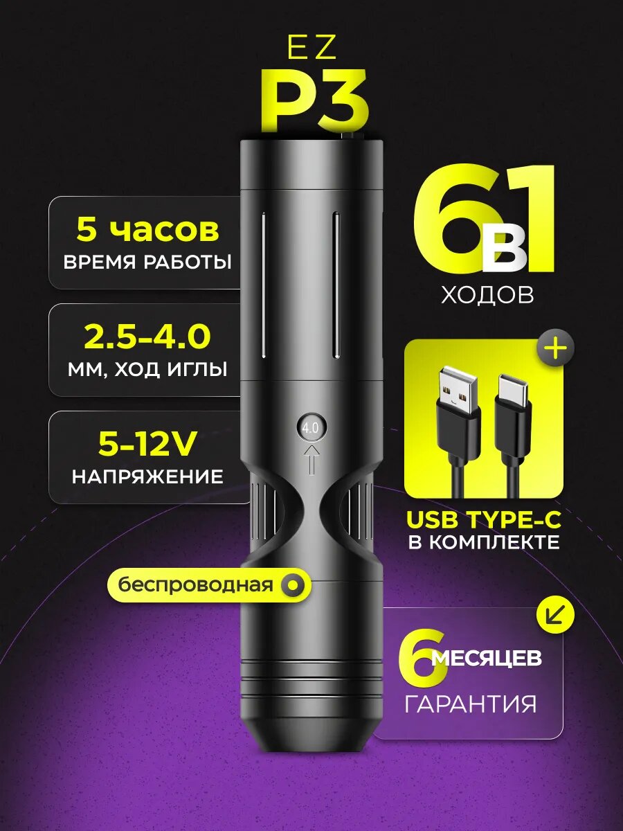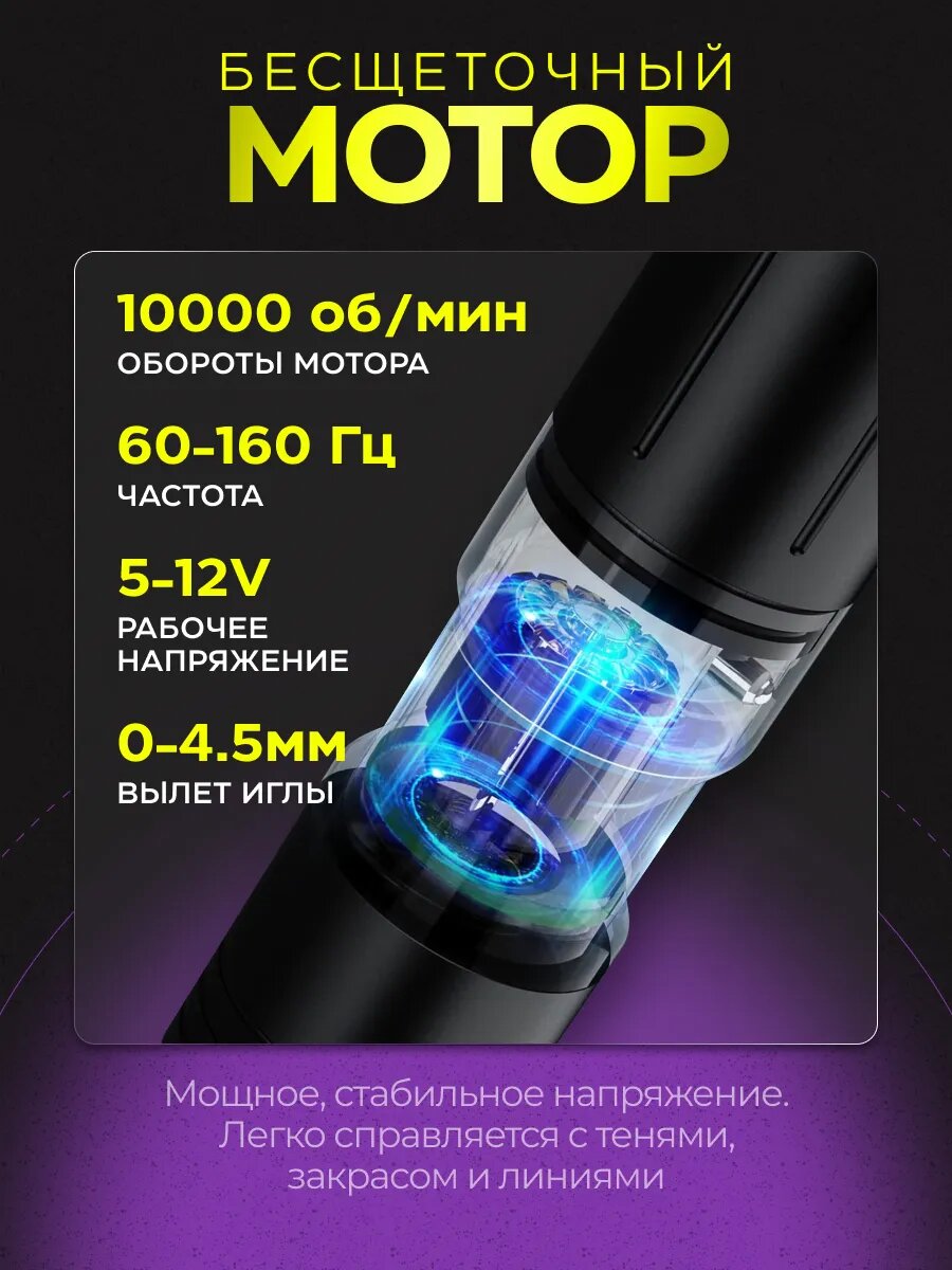 Беспроводная машинка Pen P3 с регулируемым ходом иглы, обеспечивает плавную и точную работу.
