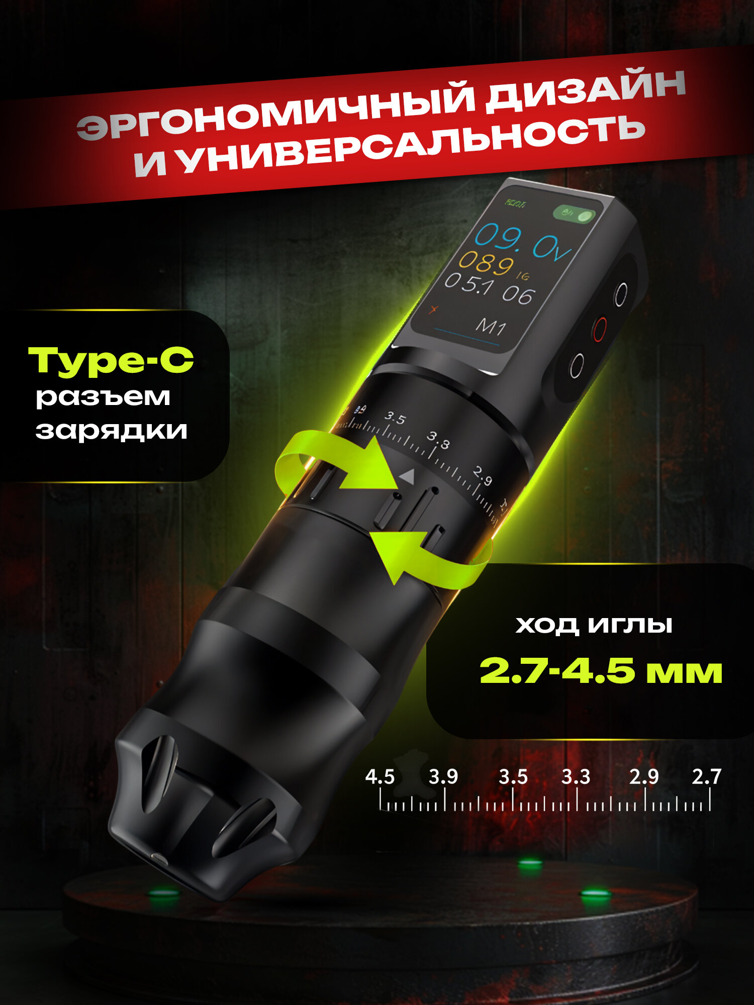 Тату-машинка Татушоп «Stalker 3», беспроводная, регулируемая, чёрная
