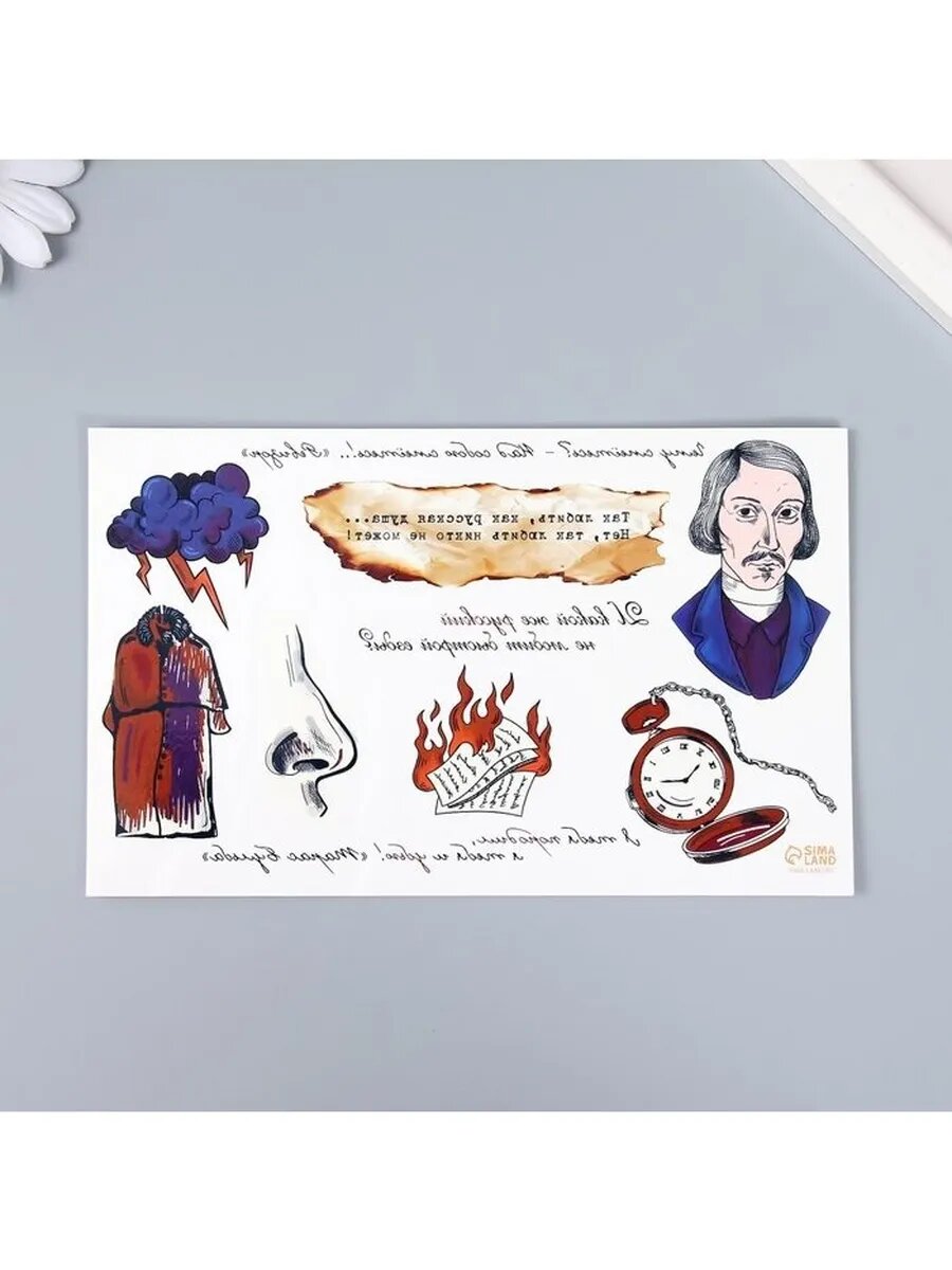 Татуировка на тело цветная «Н. В. Гоголь — Чему смеётесь?» 18: сравнение цен, характеристики, фото, актуальное наличие и цены.