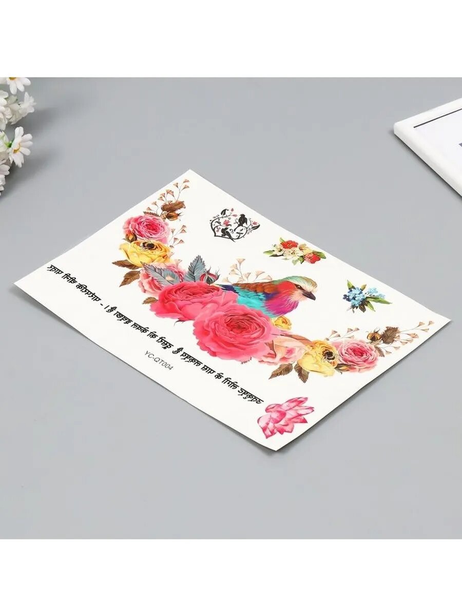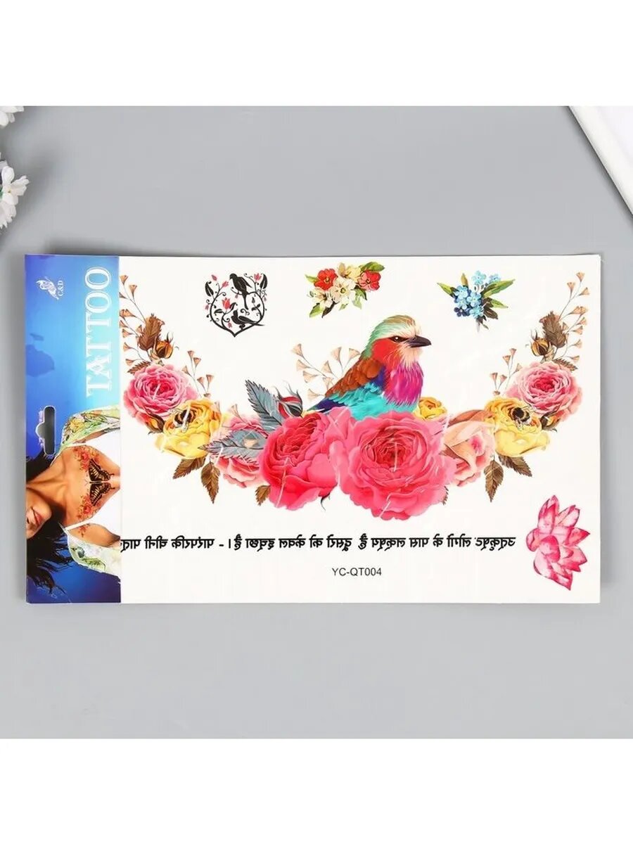 Купить Татуировка на тело цветная «Птица в розах» 36,5х22 см с доставкой по всей России.