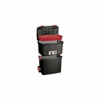 Ящик для инструмента предназначен для хранения различных инструментов и приспособлений. На нижней части корпуса расположены колеса, с помощью которых осуществляется легкая транспортировка. Крышка закрывается на два замка. Также данная серия комплектуется лотком, который позволяет хранить мелкие детали в отдельных ячейках. Размер 470х290х630мм
