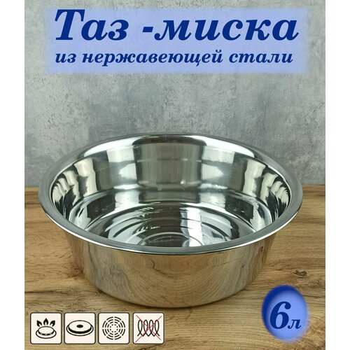 Купить Таз 6 литров, миска из нержавеющей стали для пищевых продуктов универсальная с доставкой по всей России. Таз 6 литров, миска из нержавеющей стали для пищевых продуктов универсальная: сравнение цен, характеристики, фото, актуальное наличие и цены.