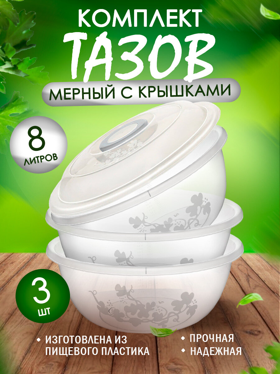 Купить Таз elfplast «Изобилие» пластиковый с крышкой 8 л 3 шт, (прозрачный) 073 с доставкой по всей России.
