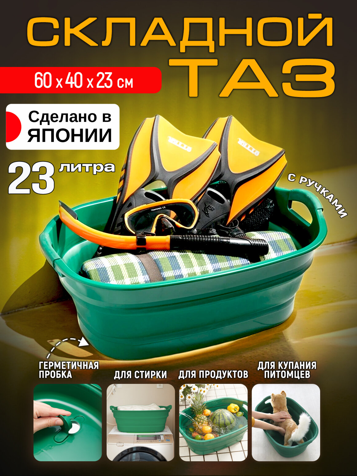 Таз складной большой хозяйственный 23 л с пробкой 60*40*23 см: сравнение цен, характеристики, фото, актуальное наличие и цены.
