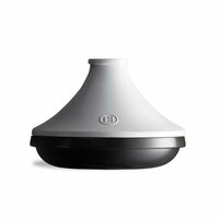 Тажин Delight позволяет готовить вкусные традиционные блюда, на медленном огне, на всех типах плит (включая индукционные), а также можно готовить в духовке. Благодаря уникальной форме крышки, обеспечивающей циркуляцию паров, приготовленные в тажине блюда нежные, сочные и ароматные. Благодаря конусообразной форме крышки, пар, поднимающийся от готовящегося блюда, многократно конденсируется в верхней ее части и спускается вниз, поэтому мясо, рыба и овощи становятся очень нежными и приобретают особый вкус. Позвольте легким и ароматным соблазнам увлечь вас: тажин из курицы с лимоном, тажин из морепродуктов, вегетарианский тажин… Доверьтесь интуиции и инстинктам, как это делают марокканцы, и создайте свой собственный рецепт тажина! 27-сантиметровый тажин рассчитан на 8-10 порций. Сочетание гладких линий белой крышки и черного основания смотрится на столе сверхстильно. Его естественная антипригарная глазурь позволяет легко мыть и обслуживать. Как и любую другую продукцию Emile Henry, тажин можно помещать в посудомоечную машину, не боясь, что со временем он потеряет свой цвет. Изготовленный вручную и проверенный в бургундских мастерских, тажин Delight имеет гарантию 5 лет.