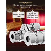 | Дополнительная информация | карманный театральный бинокль с увеличением 3x, полное многократное просветление оптики, оперативная фокусировка с помощью центрального барабанчика, изменяемое межзрачковое расстояние, элегантный дизайн металлического корпуса |