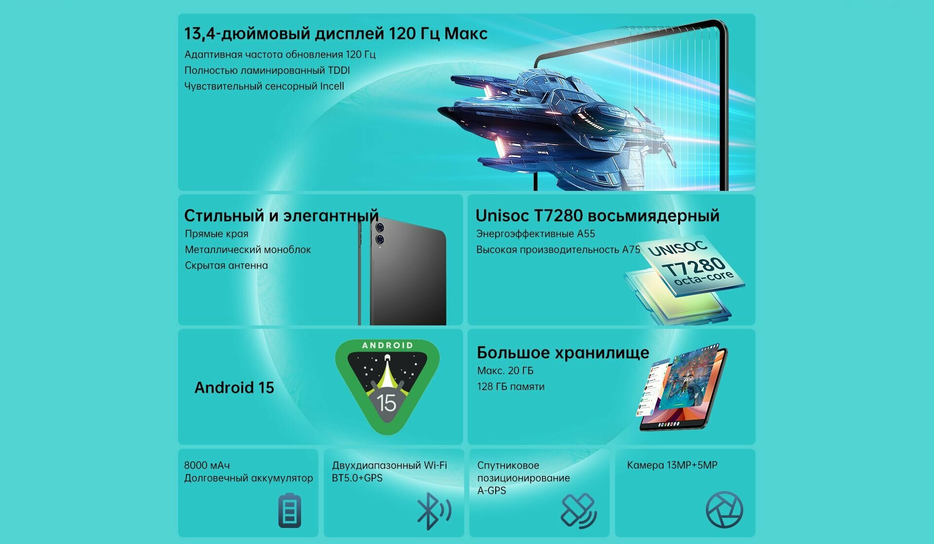 Teclast Планшет Odea A13 13.4″ IPS 1920X1200 (120Гц),8+12 Гб, 128Гб, Tiger T7280, Android 15: сравнение цен, характеристики, фото, актуальное наличие и цены.