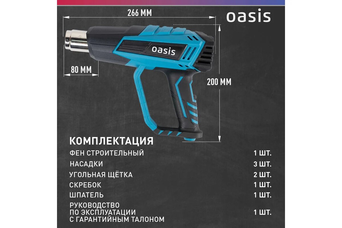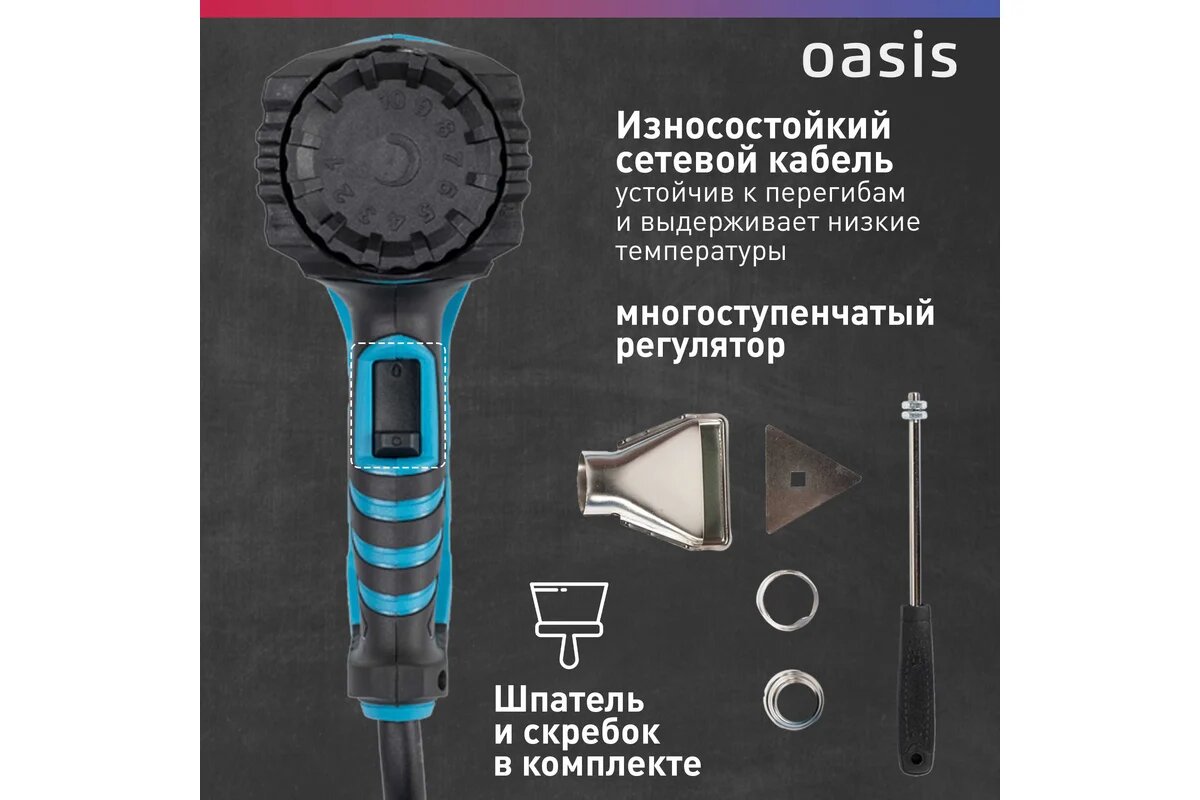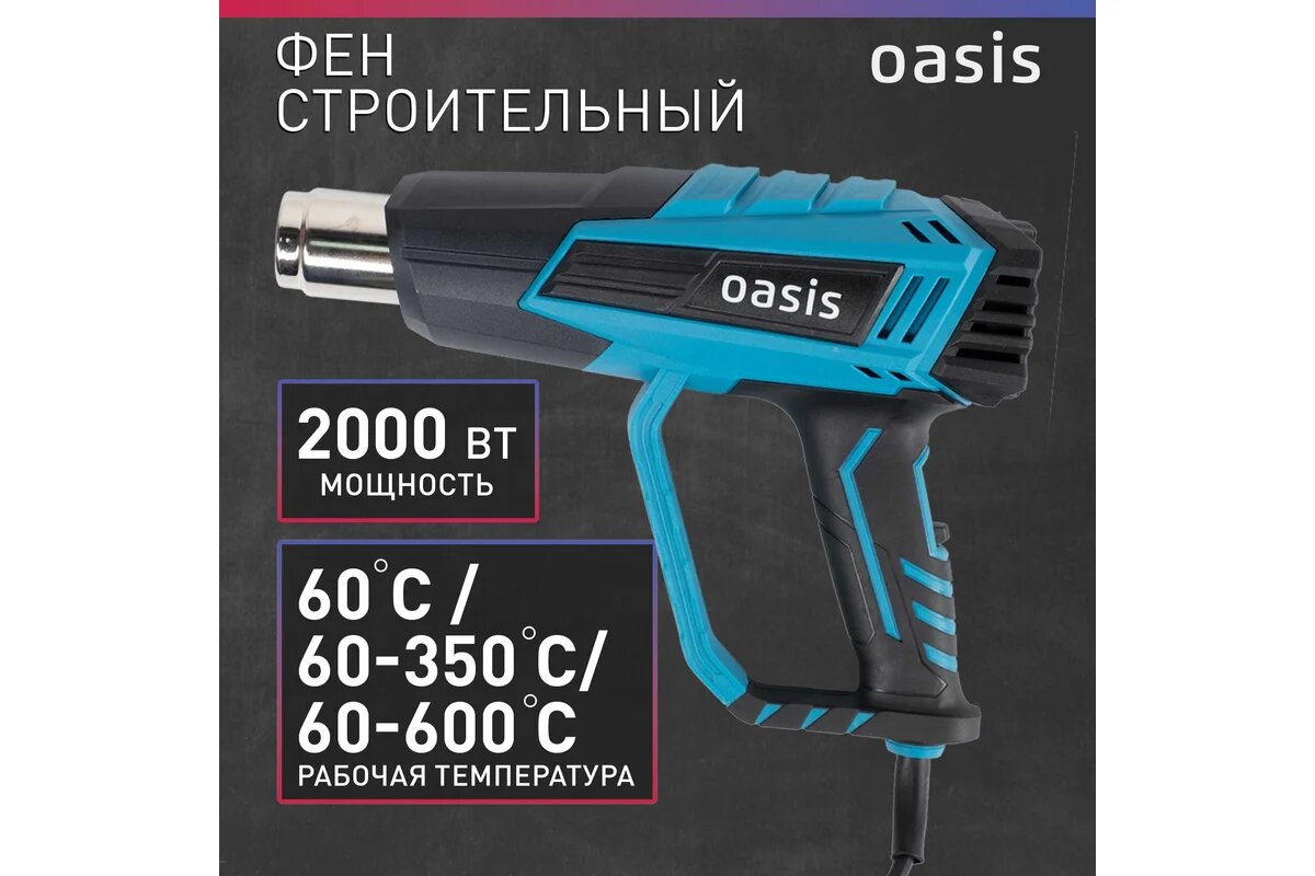 Технический фен Oasis Tg-20R, с регулировкой температуры, 2 насадки, 2000Вт: сравнение цен, характеристики, фото, актуальное наличие и цены.