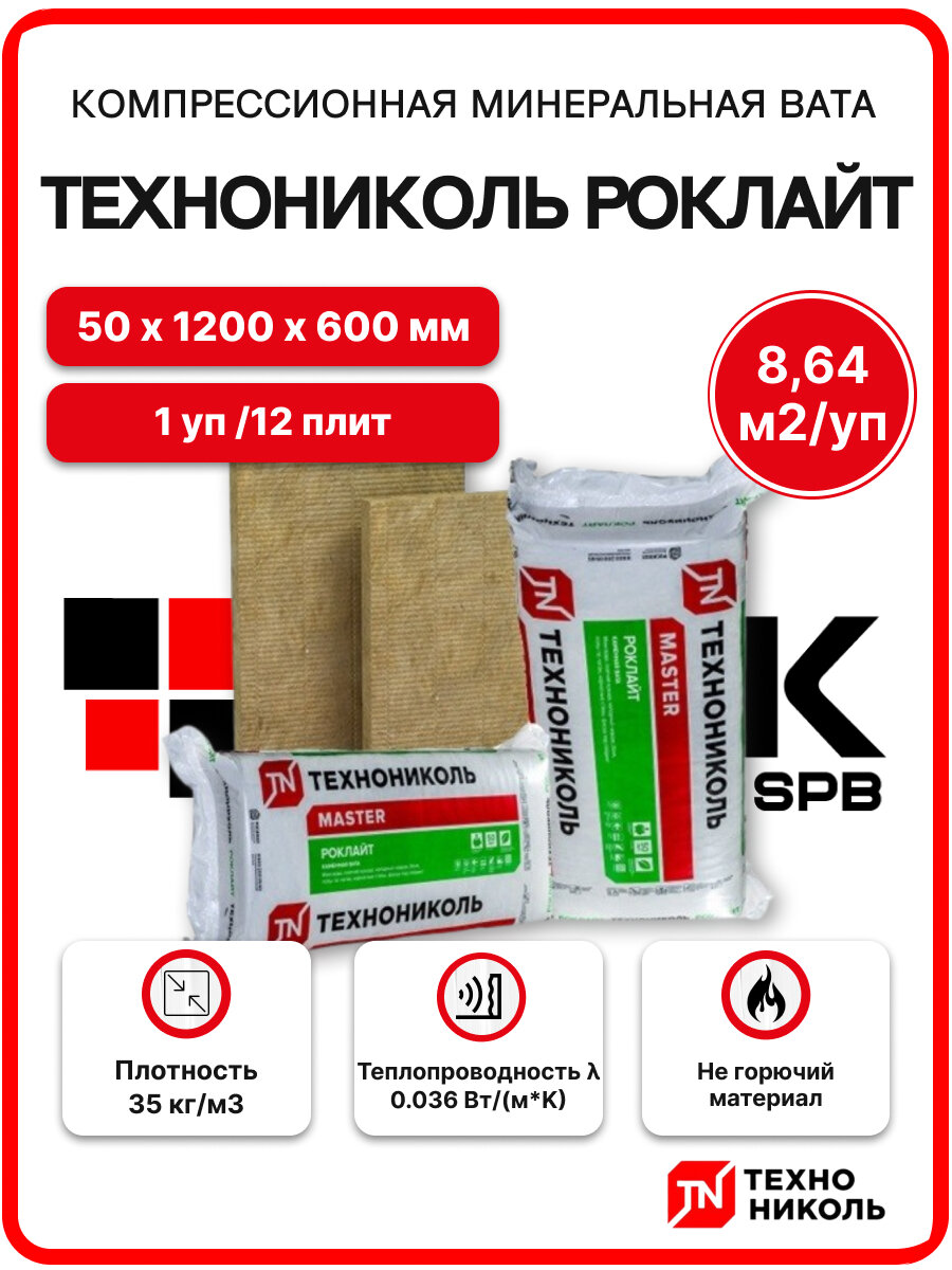 Технониколь Роклайт компрессия 50 мм (1 уп / 12 плит/8,64 м2) минеральная вата для стен, пола, кровли: сравнение цен, характеристики, фото, актуальное наличие и цены.
