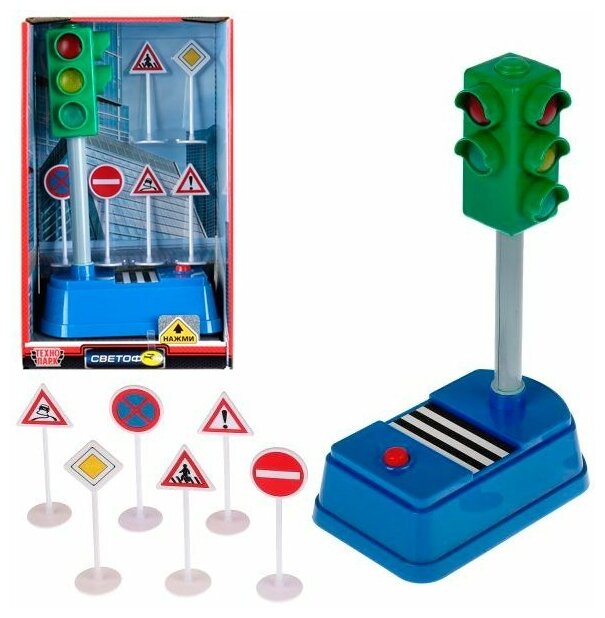 Технопарк Игровой набор Светофор+дорожные знаки (свет, звук, в коробке, от 3 лет) SB-18-30-OB (ст.24/ст.12) , (Shantou City Daxiang Plastic Toy Products Co, Ltd): сравнение цен, характеристики, фото, актуальное наличие и цены.