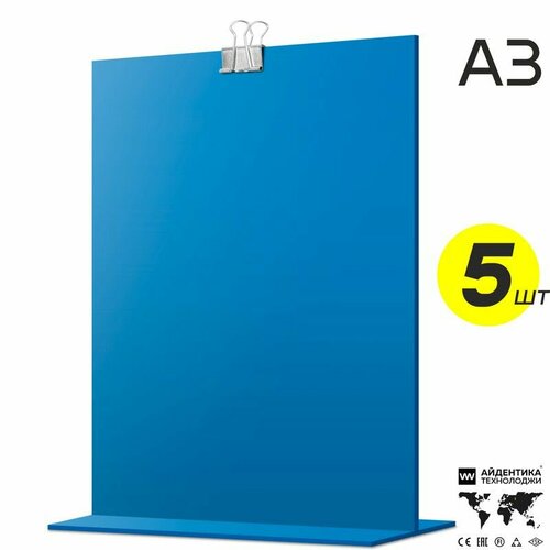 Купить Тейбл тент А3 голубой с зажимом, двусторонний, менюхолдер вертикальный, подставка настольная, 5 шт, Айдентика Технолоджи с доставкой по всей России.