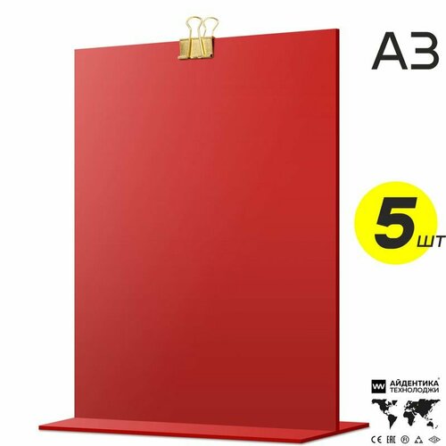 Купить Тейбл тент А3 красный с зажимом, двусторонний, менюхолдер вертикальный, подставка настольная, 5 шт, Айдентика Технолоджи с доставкой по всей России.