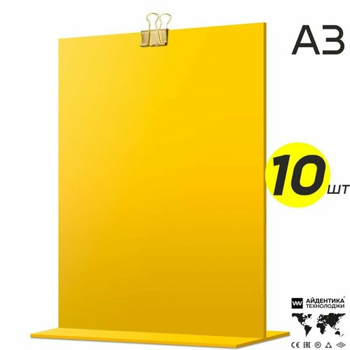 Тейбл тент А3 желтый с зажимом, двусторонний, менюхолдер вертикальный, подставка настольная, 10 шт, Айдентика Технолоджи: сравнение цен, характеристики, фото, актуальное наличие и цены.