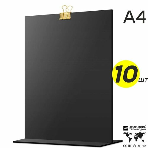 Тейбл тент А4 черный с зажимом, двусторонний, менюхолдер вертикальный, подставка настольная, 10 шт, Айдентика Технолоджи: сравнение цен, характеристики, фото, актуальное наличие и цены.