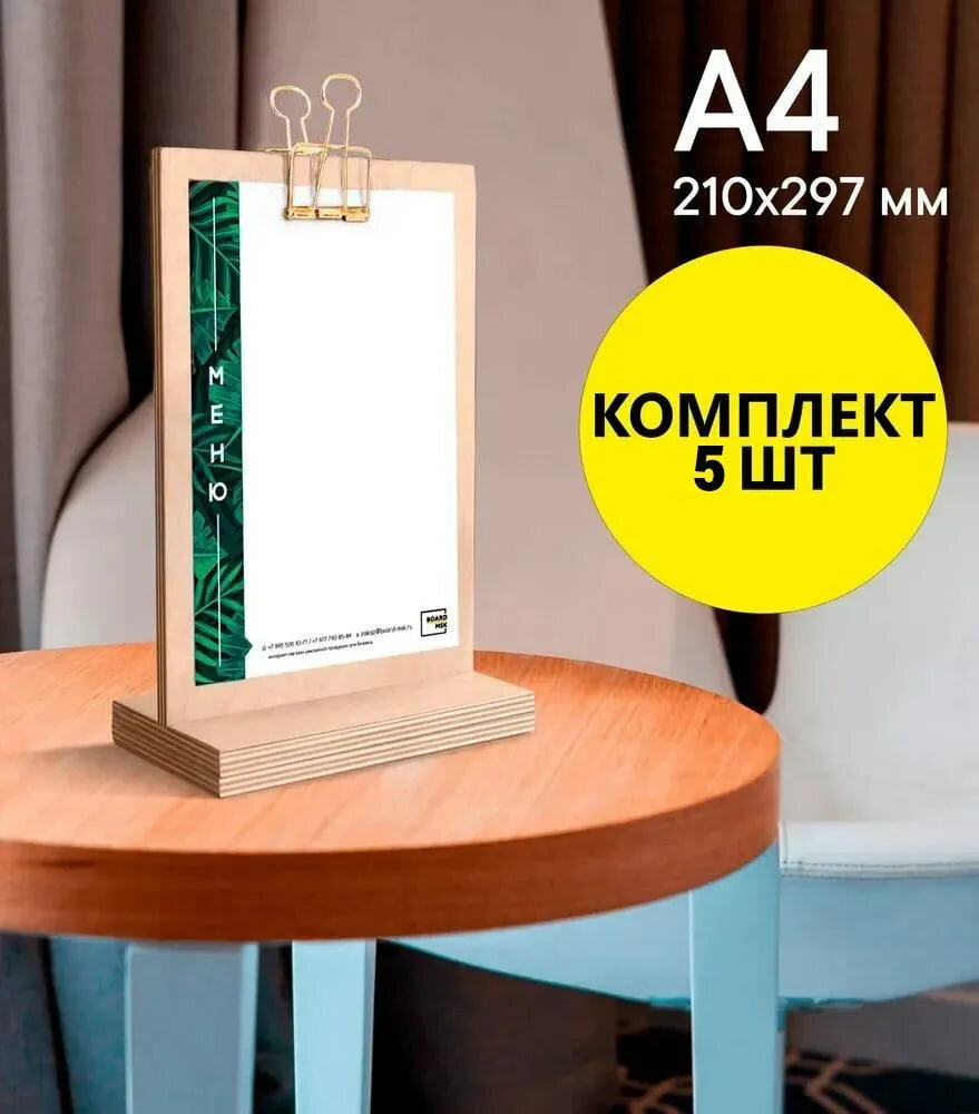 Тейбл-тент / Менюхолдер, А4 (297 х 210), вертикальный, двусторонний, на деревянной подставке с золотой прищепкой: сравнение цен, характеристики, фото, актуальное наличие и цены.