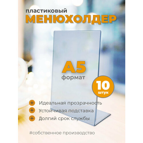 Ищете идеальное решение для организации рекламных материалов в кафе, ресторанах или офисах? Вертикальный менюхолдер а5 10 штук, двухсторонний с прозрачным материалом, который позволит стильно и удобно показывать информацию вашим клиентам и сотрудникам. Этот двухсторонний держатель выполнен из прозрачного материала. Тейбл тент незаменим в любой обстановке: будь то уютная кофейня или оживленный бар. Пластиковая конструкция отличается устойчивостью и легкостью благодаря материалу толщиной 1,5 мм. Вы сможете использовать пластиковый тейбл-тент на столах ресторанов или столовых, баров без опасений за сохранность информации внутри. Держатель подойдет для различных документов: от меню и прайсов до важных документов или фото. На рабочем месте в офисе, на ресепшен, ПВЗ, магазине, торговом центре, гостинице, отеле, салоне — менюхолдер, холдер станет стильным элементом декора. Тейбл-тент а5 двухсторонний, подставка для бумаг вертикальная также полезен в конференц-залах, на выставках, ярмарках, где важна презентация информации о месте или организации. Универсальность двухсторонней настольной таблички, подставки позволяет использовать её не только для еды и напитков в ресторане, но и для ценников в пекарнях, меню, прайсов, канцелярских принадлежностей, подставка для канцелярии на стол, документов. Ценникодержатель, презентационная рамка подходит для рекламы акций, предложений дня, рекламных материалов — клиенты точно заметят все выгодные предложения! Благодаря прозрачности табличка на стол будет органично смотреться на любом фоне без потери качества отображения. В сфере канцелярии решение выступает как стойка для держателя бумаги. Информация о мероприятиях в гостиницах станет более доступной для гостей. Холдер А5 поможет организовать бумажную документацию дома или на даче. Если участвуете в ярмарках, презентациях, наш холдер станет настоящей находкой! Удобный формат А5, прозрачный пластик 1,5 мм, устойчивый, предоставляет возможность демонстрировать продукцию наиболее выигрышно.