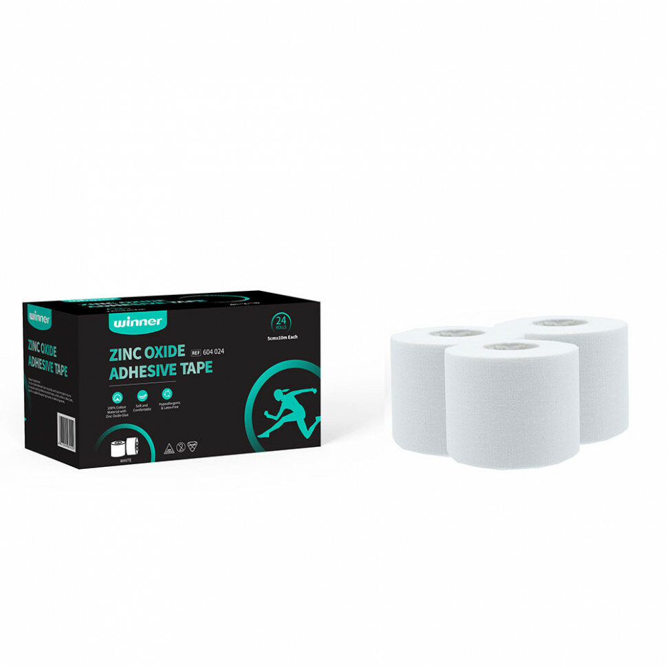 Купить Тейп жесткий спортивный WINNER оксид цинка, 604024, 5см*10м, белый 24 шт/уп с доставкой по всей России.