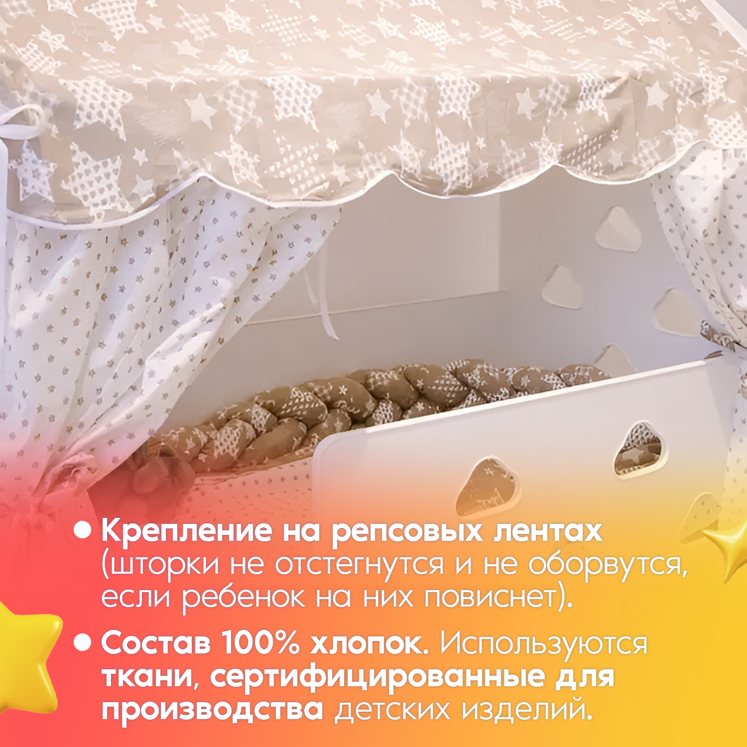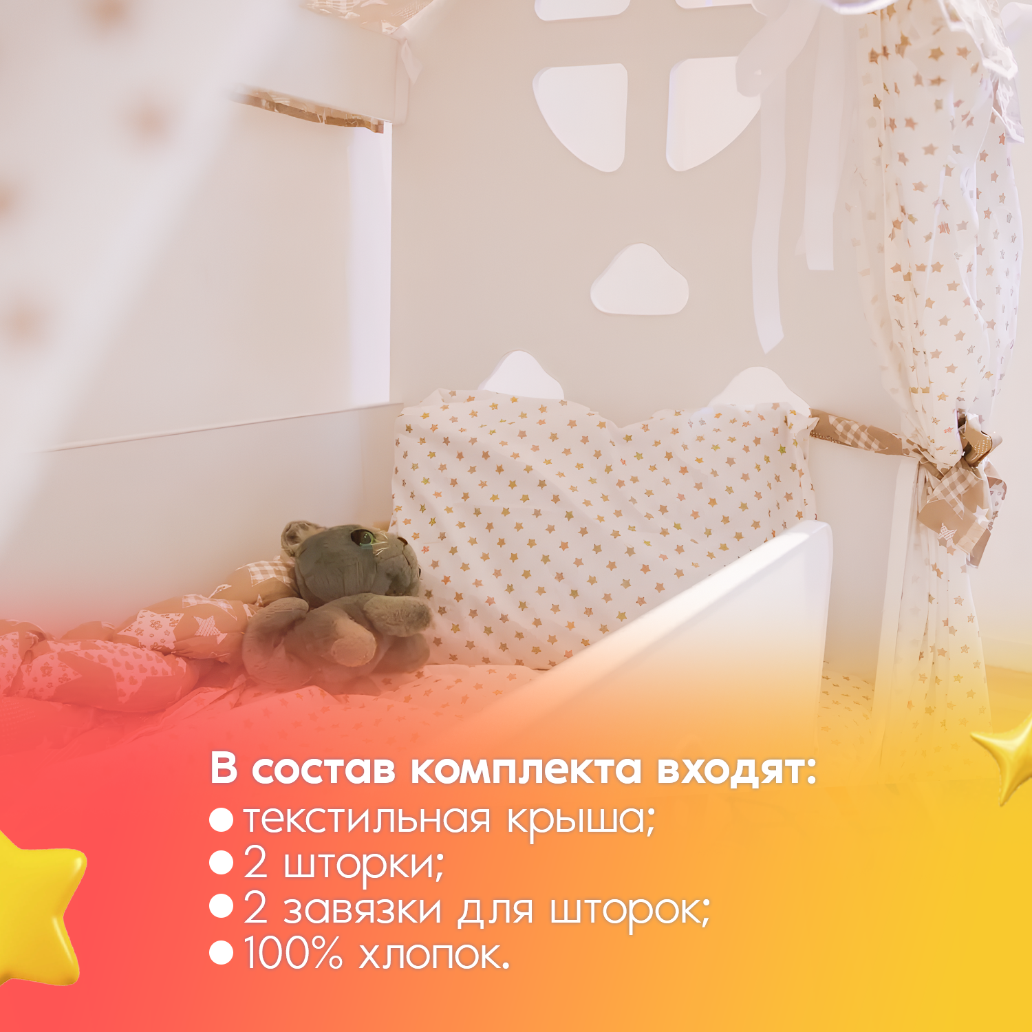 Текстиль на кровать домик 80х160 см. Крыша-балдахин на кровать домик со шторками, 100% хлопок, поплин, цвет бежевый со звездами: сравнение цен, характеристики, фото, актуальное наличие и цены.