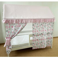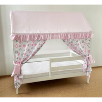 Кроватка домик - это отличное функциональное решение, место и для сна, и для игр. Оформить Ваш домик в индивидуальном дизайне можно при помощи текстильных крыши и стен. Крыша на кровать домик создают сказочную атмосферу для игр, являются уникальным дополнением интерьера детской комнаты, а также защищают малыша от сквозняков и пыли. Для пошива крыши и штор на кроватку домик используются только качественные безопасные материалы.