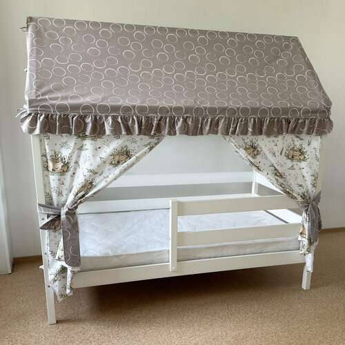 Кроватка домик - это отличное функциональное решение, место и для сна, и для игр. Оформить Ваш домик в индивидуальном дизайне можно при помощи текстильных крыши и стен. Крыша на кровать домик создают сказочную атмосферу для игр, являются уникальным дополнением интерьера детской комнаты, а также защищают малыша от сквозняков и пыли. Для пошива крыши и штор на кроватку домик используются только качественные безопасные материалы.