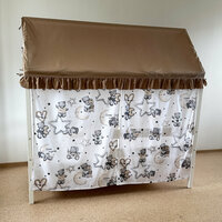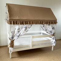 Кроватка домик - это отличное функциональное решение, место и для сна, и для игр. Оформить Ваш домик в индивидуальном дизайне можно при помощи текстильных крыши и стен. Крыша на кровать домик создают сказочную атмосферу для игр, являются уникальным дополнением интерьера детской комнаты, а также защищают малыша от сквозняков и пыли. Для пошива крыши и штор на кроватку домик используются только качественные безопасные материалы.