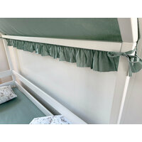 Кроватка домик - это отличное функциональное решение, место и для сна, и для игр. Оформить Ваш домик в индивидуальном дизайне можно при помощи текстильных крыши и стен. Крыша на кровать домик создают сказочную атмосферу для игр, являются уникальным дополнением интерьера детской комнаты, а также защищают малыша от сквозняков и пыли. Для пошива крыши и штор на кроватку домик используются только качественные безопасные материалы.