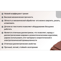 Текстолит ПТ - поделочный конструкционный текстолит. ГОСТ 5-78. Простейшая разновидность текстолита на тканой хлопчатобумажной основе, служит для изготовления деталей, работающих при невысоких механических нагрузках. Самая распространенная и недорогая марка. Основными преимуществами конструкционного текстолита ПТ являются: