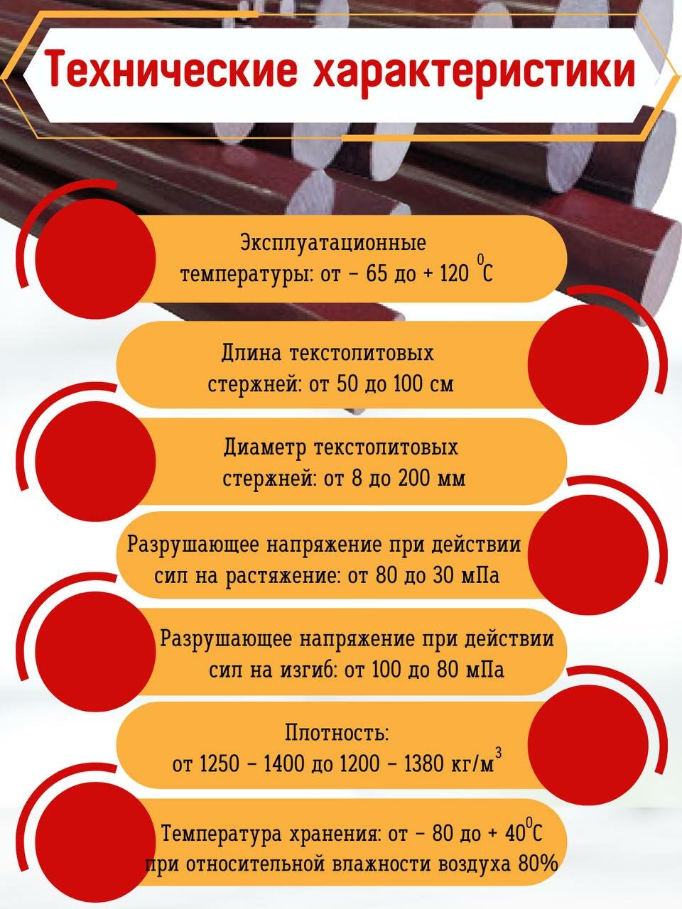 - Диаметр текстолитовых стержней: от 8 до 200 мм.