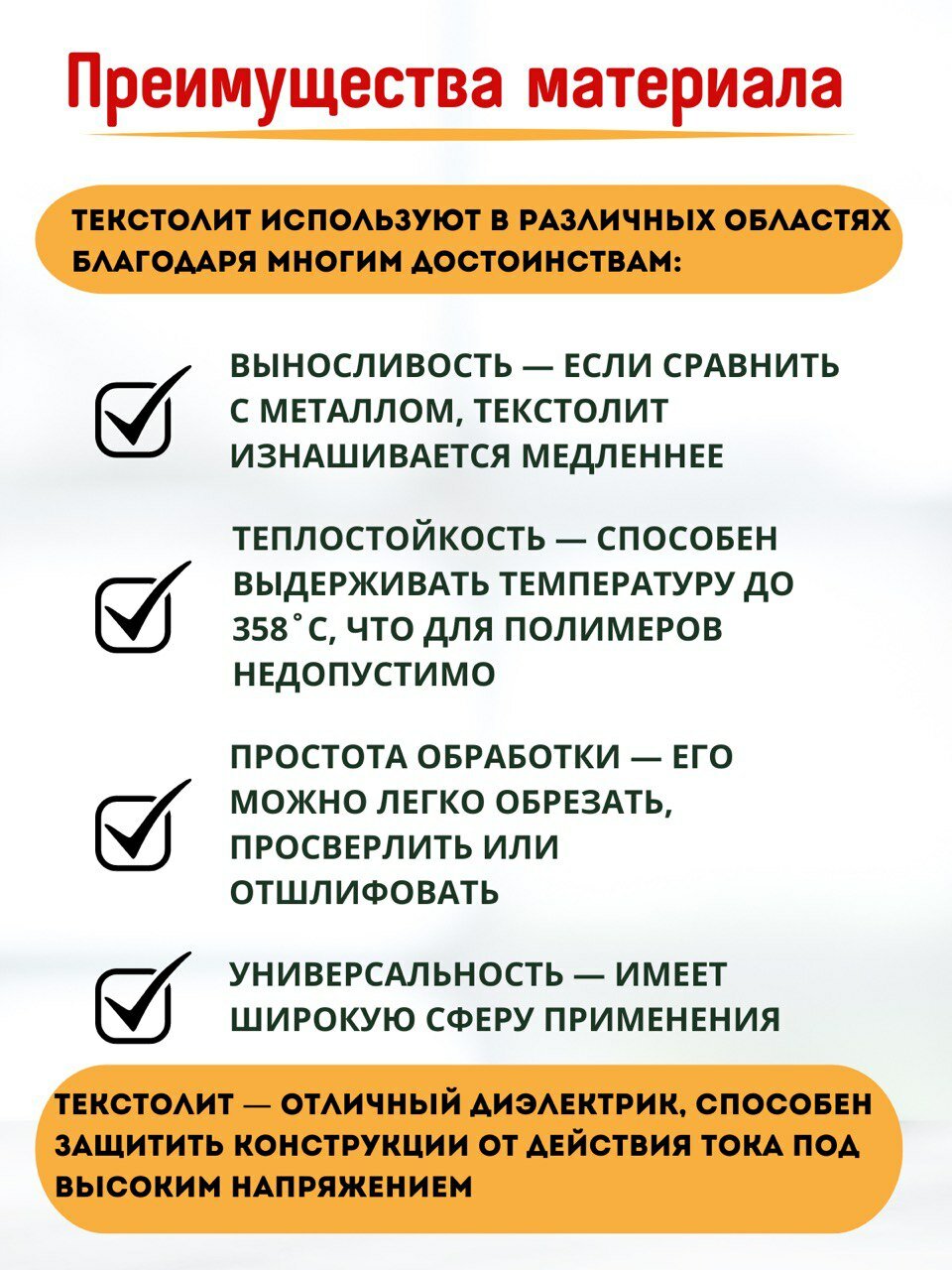 - Текстолит-стержень имеет высокую температуру горения - + 358 градусов.