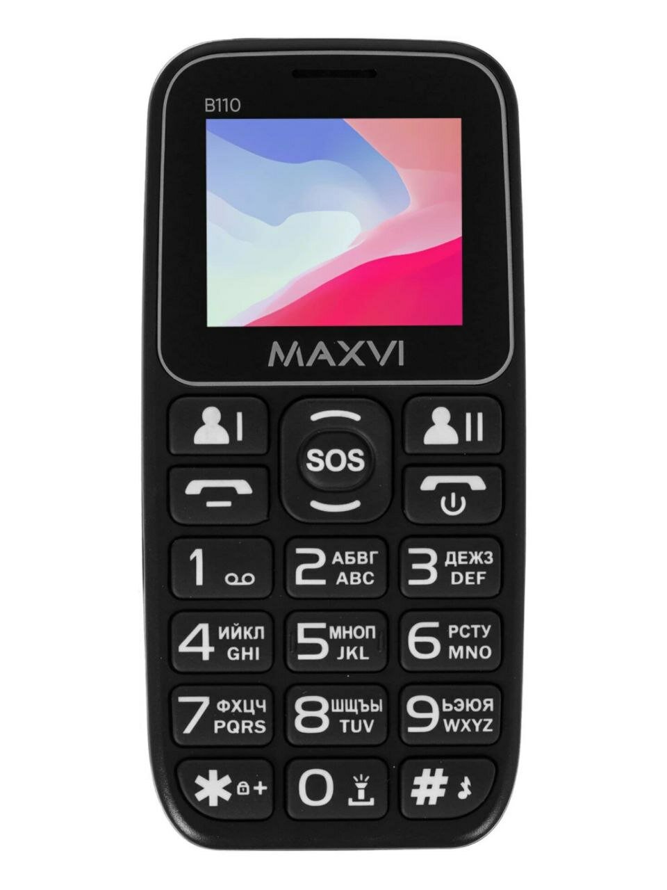 Телефон кнопочный Maxvi B110, С функцией SOS, 2 SIM, Аккумулятор 1000 мА ч, Для пожилых и детей, FM-радио, черный: сравнение цен, характеристики, фото, актуальное наличие и цены.