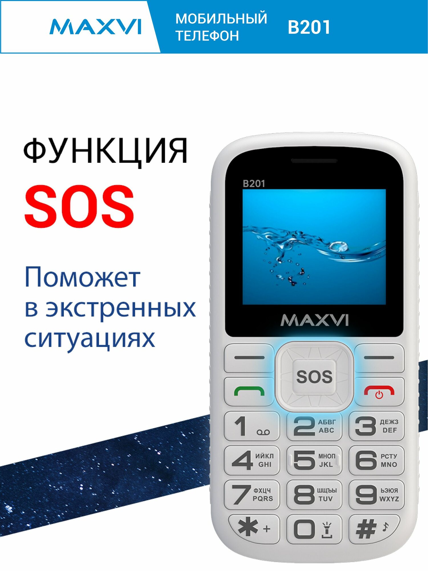Телефон кнопочный с увеличенным шрифтом и кнопкой SOS Maxvi B201 белый: сравнение цен, характеристики, фото, актуальное наличие и цены.