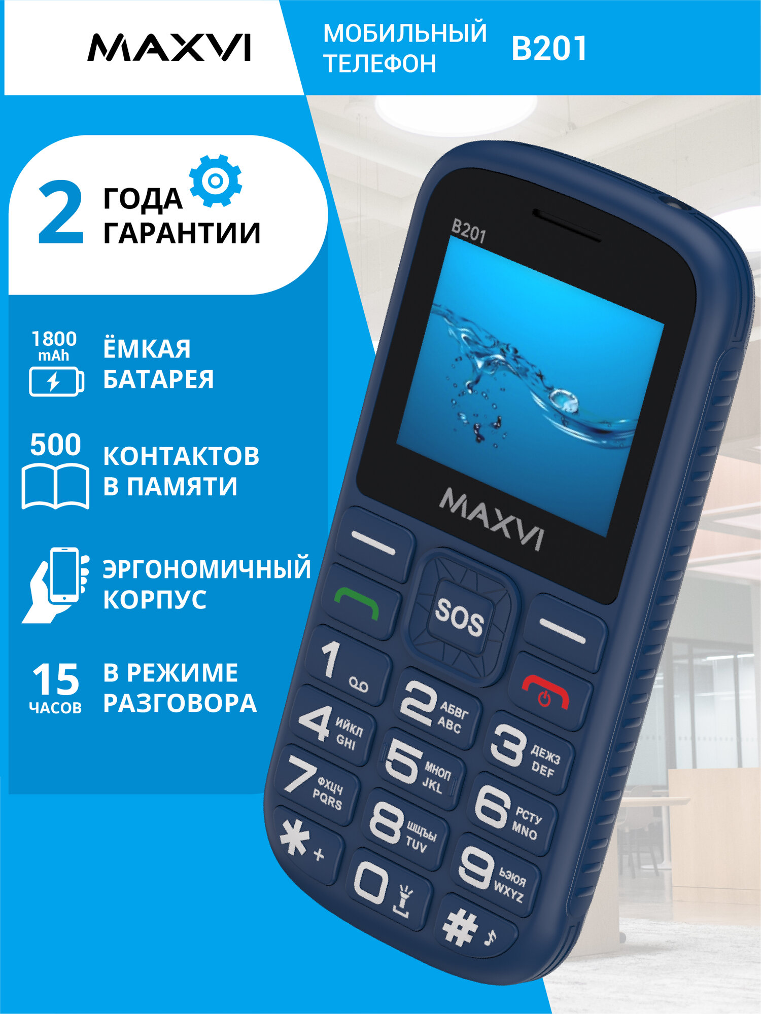 Телефон кнопочный с увеличенным шрифтом и кнопкой SOS Maxvi B201 синий: сравнение цен, характеристики, фото, актуальное наличие и цены.