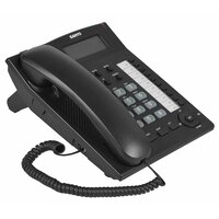 Проводной аналоговый телефон с максимальным функционалом. Подойдёт для использования в офисах, на столах линейных сотрудников. Поддерживает большой набор функций, характерных для аналоговых телефонов: спикерфон, быстрый набор номеров из памяти. Большой ЖК дисплей отображает максимум информации о текущем вызове. Телефон выполнен из прочного пластика черного цвета. Предусмотрена возможность установки аппарата на стену. Подключается к двухпроводной аналоговой линии. Питание от линии. Не требует программирования.