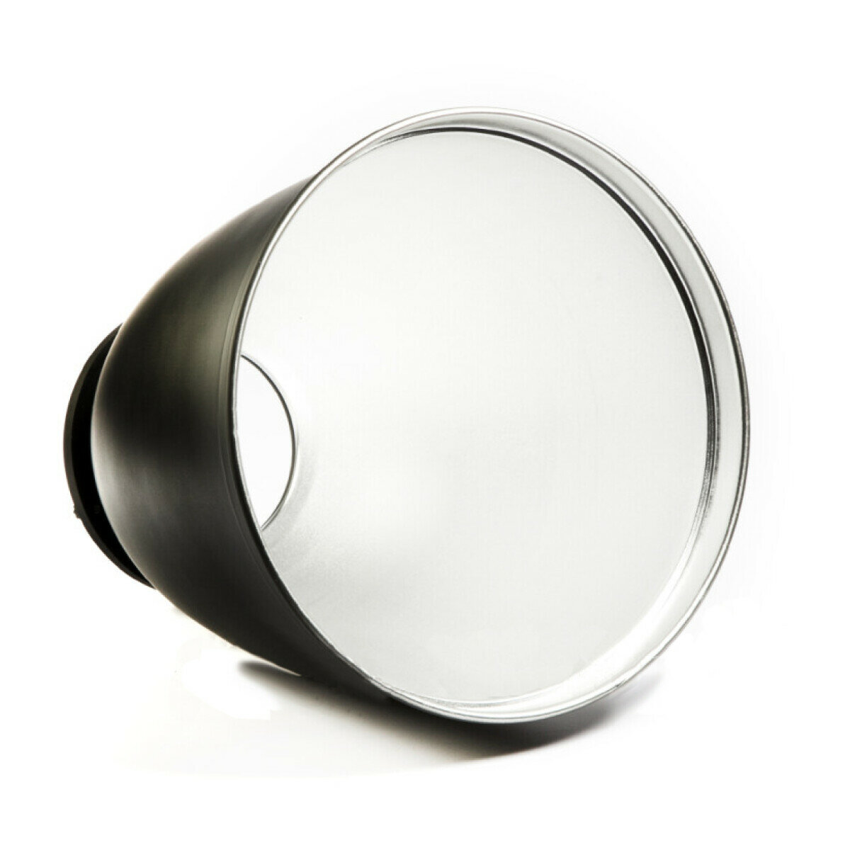 Телерефлекторы широко используются в студийных съемках и являются одними из самых распространенных световых модификаторов. Они создают ровный поток направленного света. Внутренняя поверхность рефлектора является светоотражающей, что позволяет сделать мягче светотеневой переход.