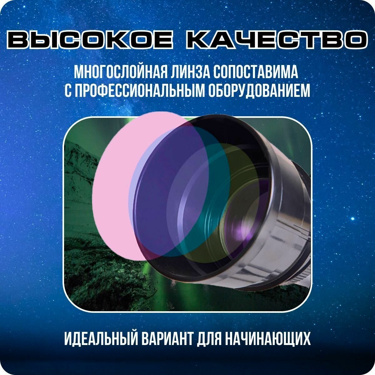 | Комплектация | телескоп - 1 шт ,окуляры ( 6 мм, 12мм и 20 мм ), трипод - 1 шт, карта созвездий - 1 шт, лунный фильтр - 1 шт, защитная крышка - 1 шт, диагональное зеркало - 1 шт, видоискатель - 1 шт, линза БАРЛОУ 1.5 х - 1 шт , инструкция на русском языке 1 - шт , адаптер для телефона - 1 шт. |