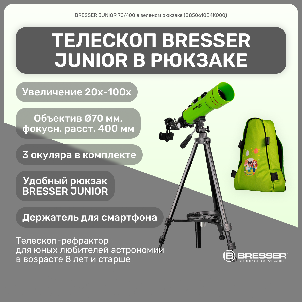 | Комплектация | Детский телескоп, Рюкзак, Оптический прицел 5x24, Диагональное зеркало, 3 окуляра (H20 / H12 / H6), 1,5-кратная оборачивающая линза, Регулируемый по высоте алюминиевый штатив, Держатель для смартфона, Руководство по эксплуатации |
