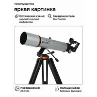 Вы можете рассчитывать на резкие и яркие изображения через этот 102-миллиметровый рефрактор. Стеклянная оптика с полным просветлением обеспечивает повышенное пропускание света, улучшая детализацию небесных объектов. Телескоп в комплекте имеет оборачивающую призму на 90 градусов, поэтому вы можете использовать телескоп в качестве зрительной трубы для наблюдения за птицами, дикой природой, пейзажами и многим другим.