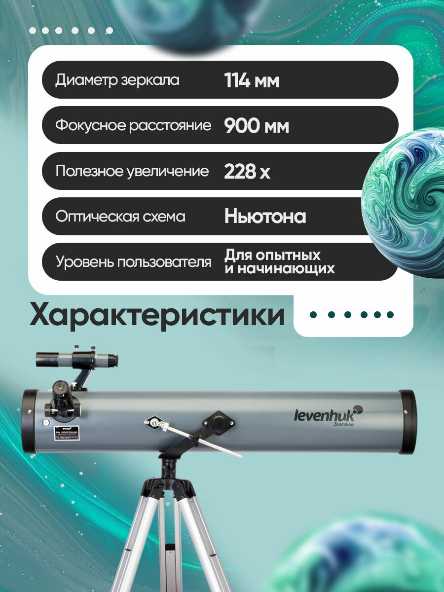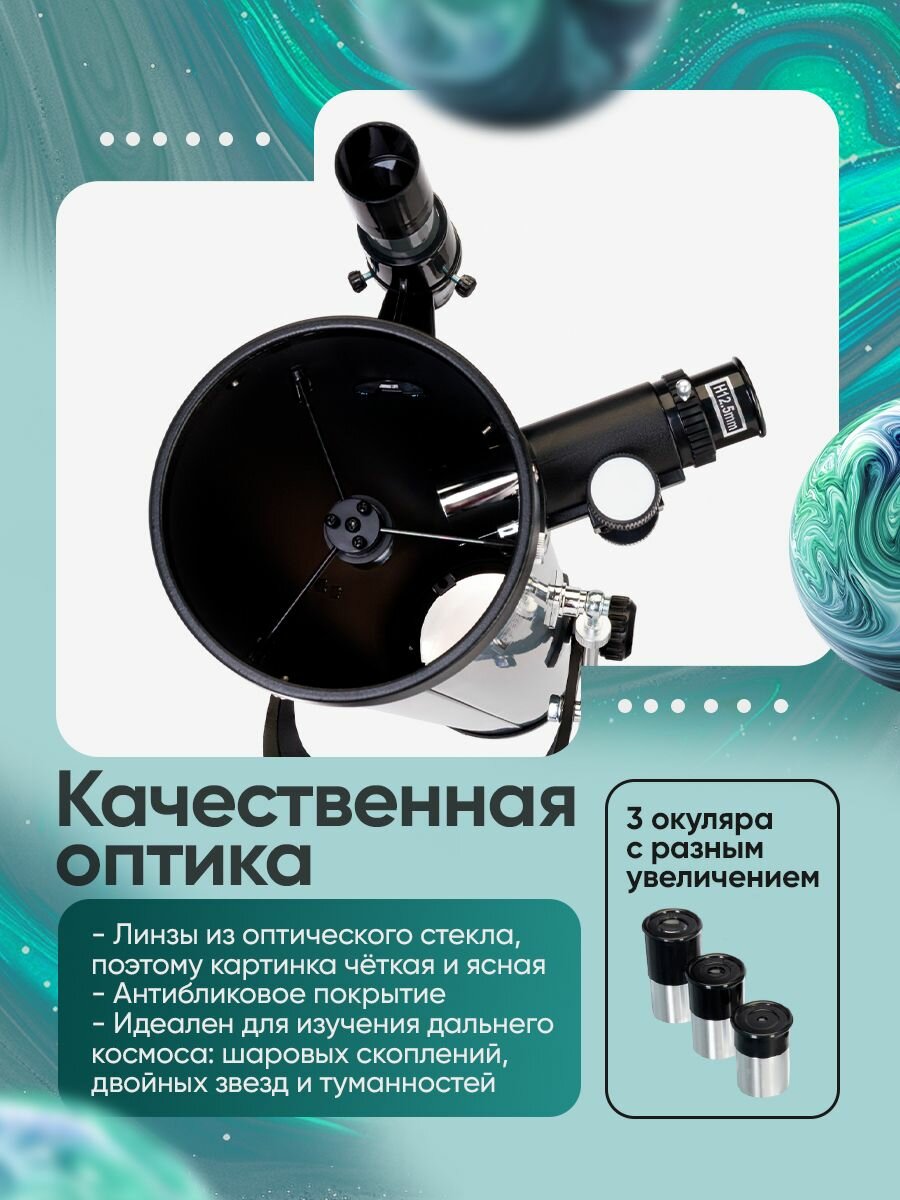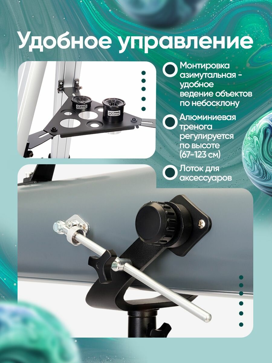 | Монтировка | азимутальная (Телескоп установлен на азимутальной монтировке с микрометрическим винтом с регулировкой по высоте) |