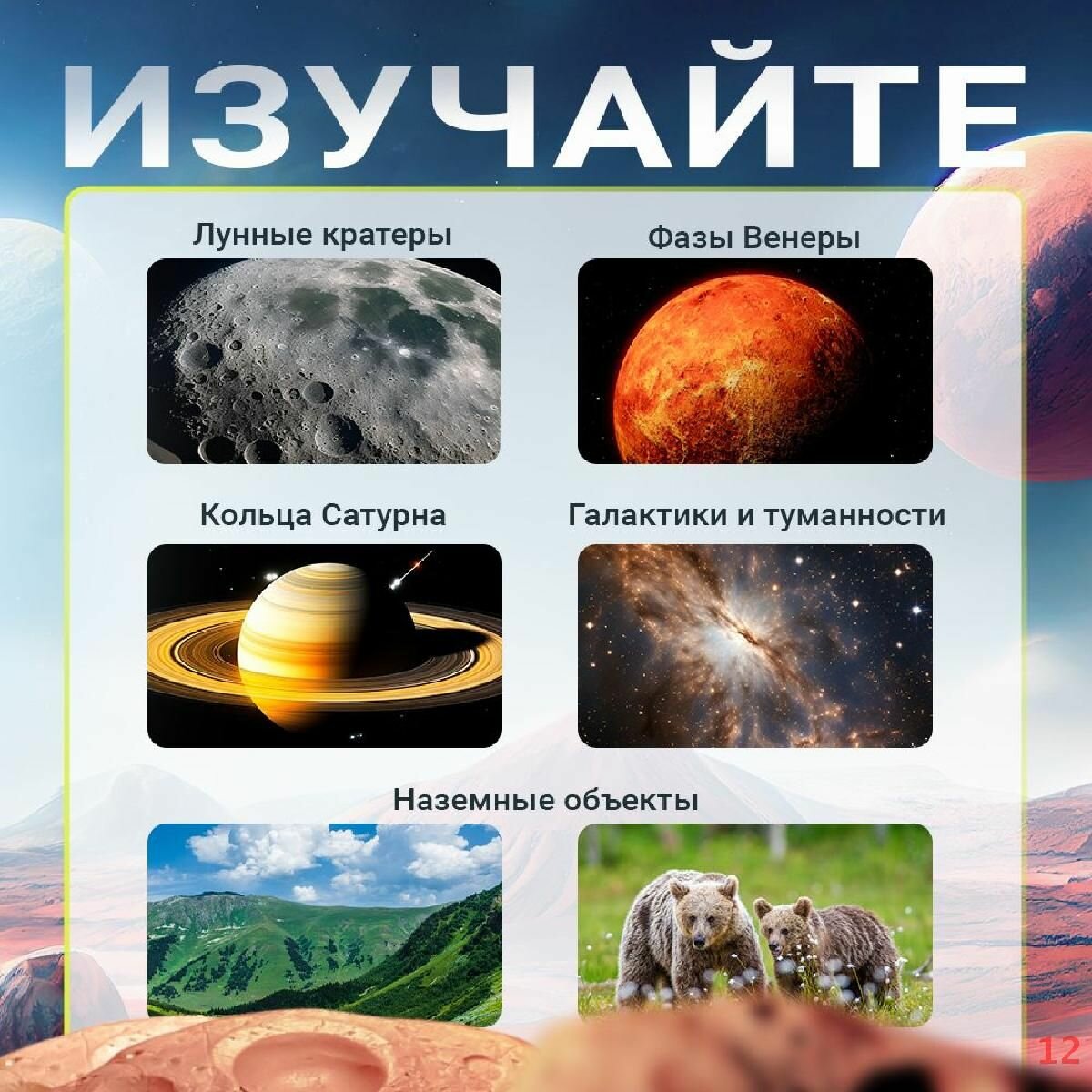 - Для наблюдений космоса ночью и наземных объектов днем