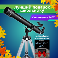рефрактор, фокусное расстояние 700 мм, диаметр объектива 70 мм, монтировка азимутальная, искатель с красной точкой--