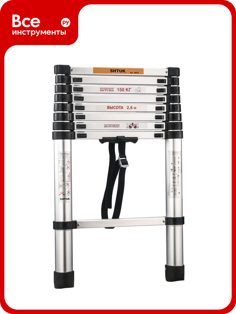 Купить Телескопическая лестница SHTOK 2.6м 20012 с доставкой по всей России. Телескопическая лестница SHTOK 2.6м 20012: сравнение цен, характеристики, фото, актуальное наличие и цены.