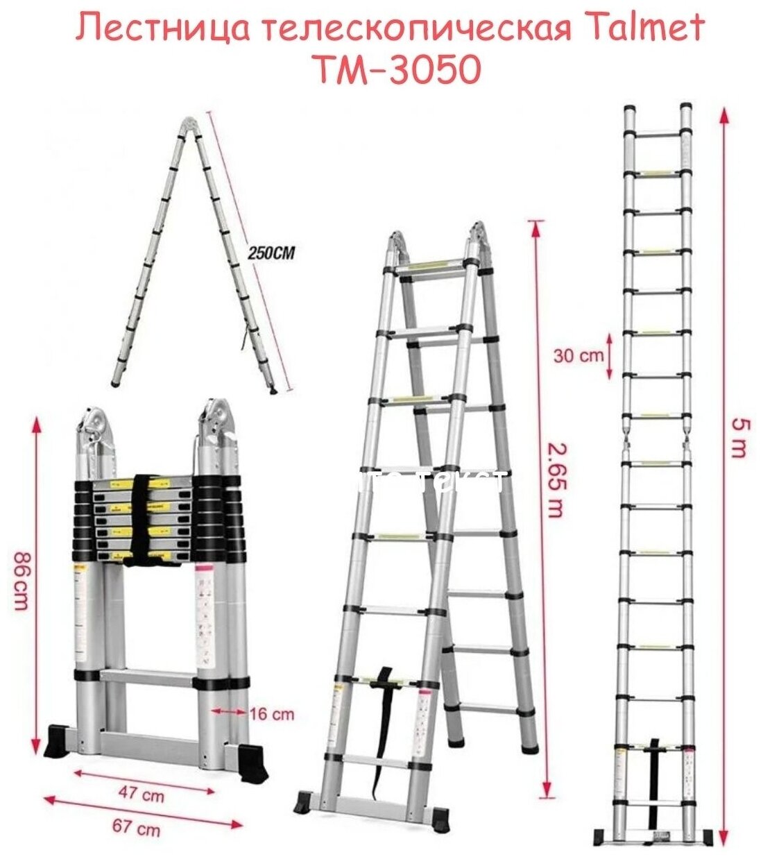 Купить Телескопическая лестница-стремянка 2.5+2.5 Talmet Prof TM-3050 с доставкой по всей России. Телескопическая лестница-стремянка 2.5+2.5 Talmet Prof TM-3050: сравнение цен, характеристики, фото, актуальное наличие и цены.