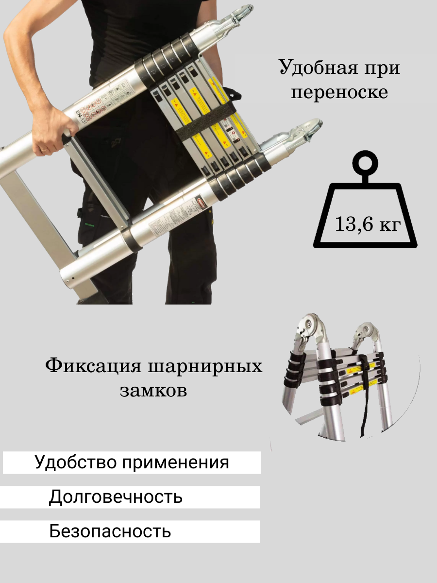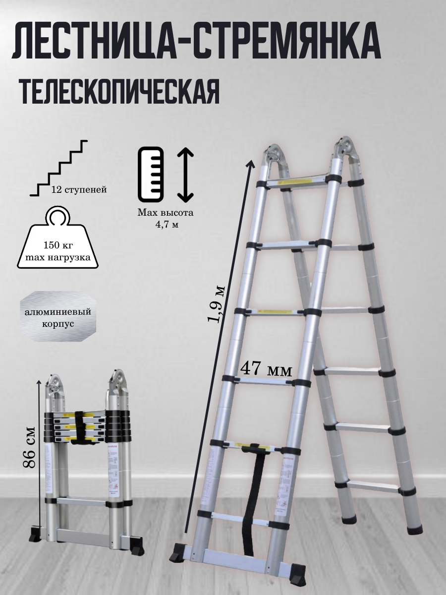 Телескопическая стремянка, складная, двухсторонняя, алюминий, серебристая, 1,9 м/ 3,8 м: сравнение цен, характеристики, фото, актуальное наличие и цены.