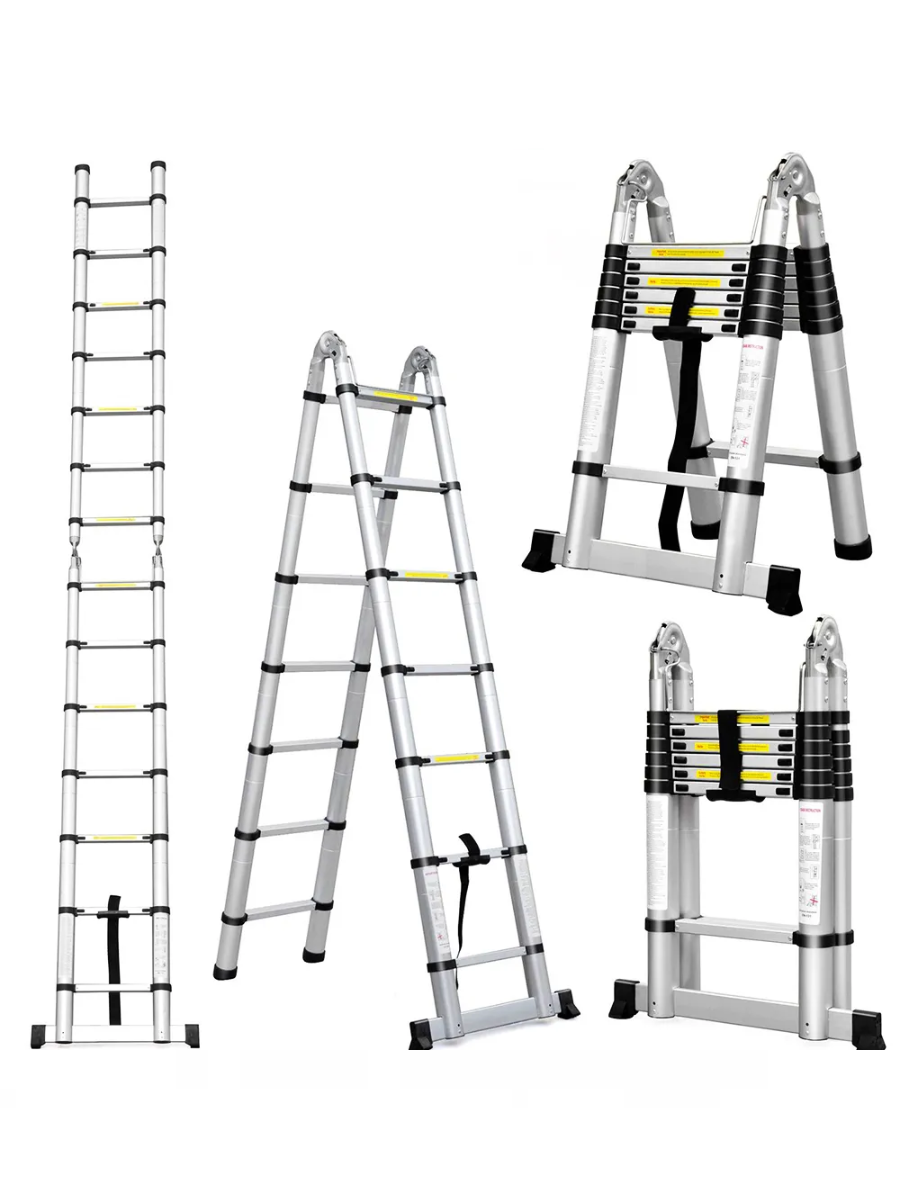 Купить Телескопическая стремянка, складная, двухсторонняя, алюминий, серебристая, 2,2 м/ 4,4 м с доставкой по всей России.